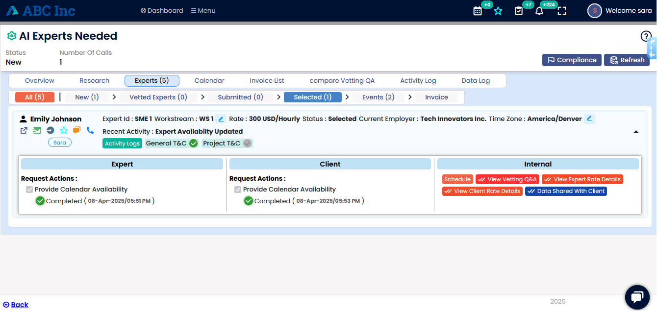 Our platform is purpose-built for expert network companies. It helps manage expert sourcing, project workflows, scheduling, compliance, messaging, and invoicing — all in one place.